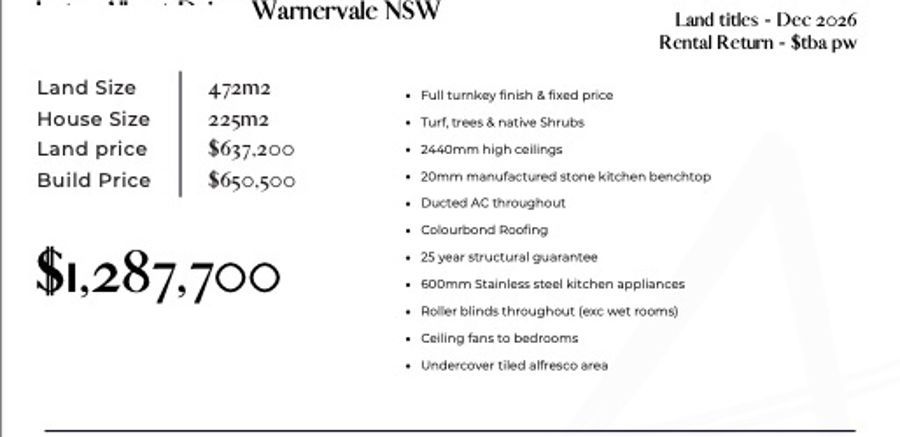 Land – 472m2 Land price – $637,200. To be registered in Dec 2026