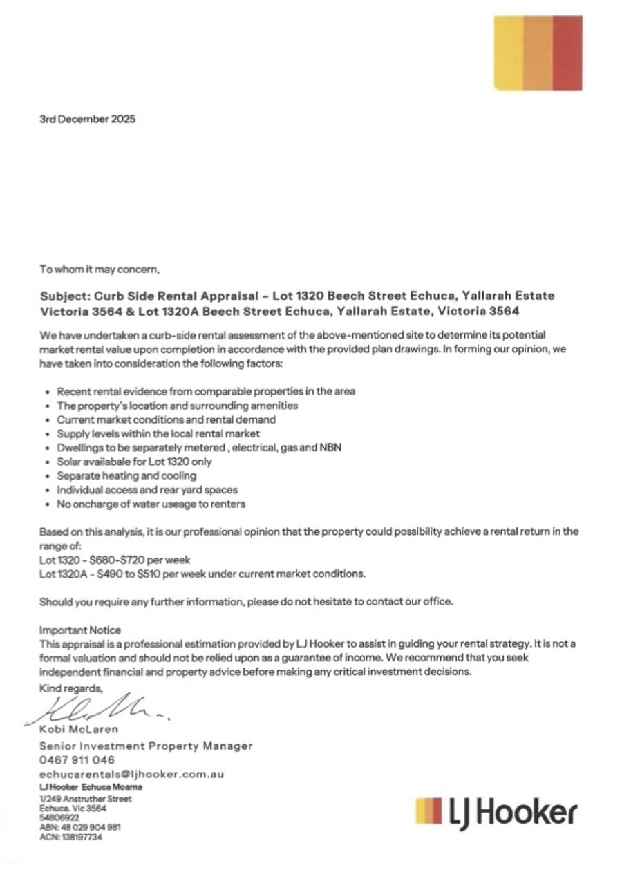Rental Estimate: $1000 to over $1230 Combined income per week – very high! Due to very low vacancy rate and very high demand. See letter of estimated rental attached.